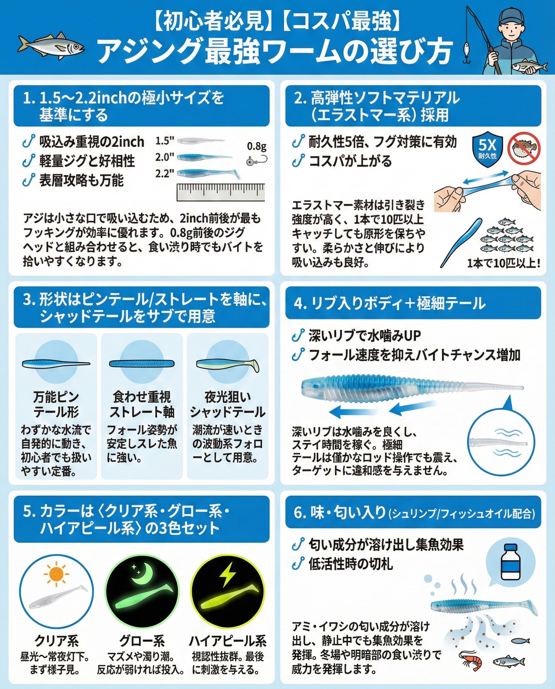 すぐ釣果につながる初心者でも釣れる最強ワームを、サイズ・素材・形状・カラー・匂いの5要素で厳選。本記事ではコスパ抜群の8モデルと実践テクをまとめ、初挑戦でもアジが釣れる近道を示します。