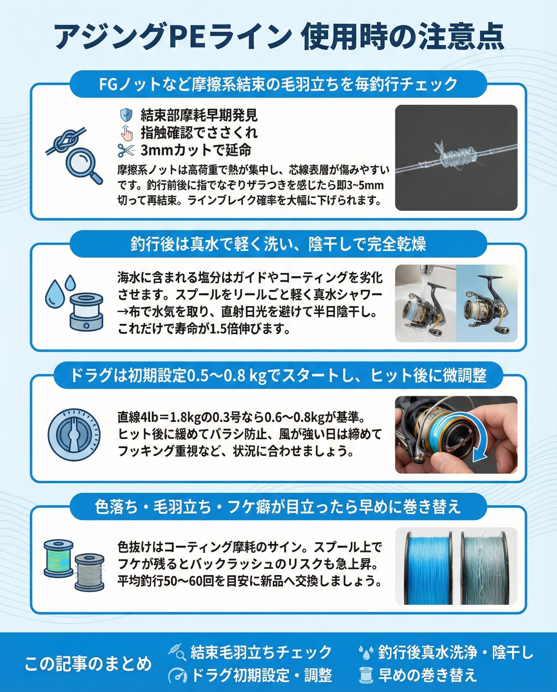 使用時の注意点FGノットなど摩擦系結束の毛羽立ちを毎釣行チェック