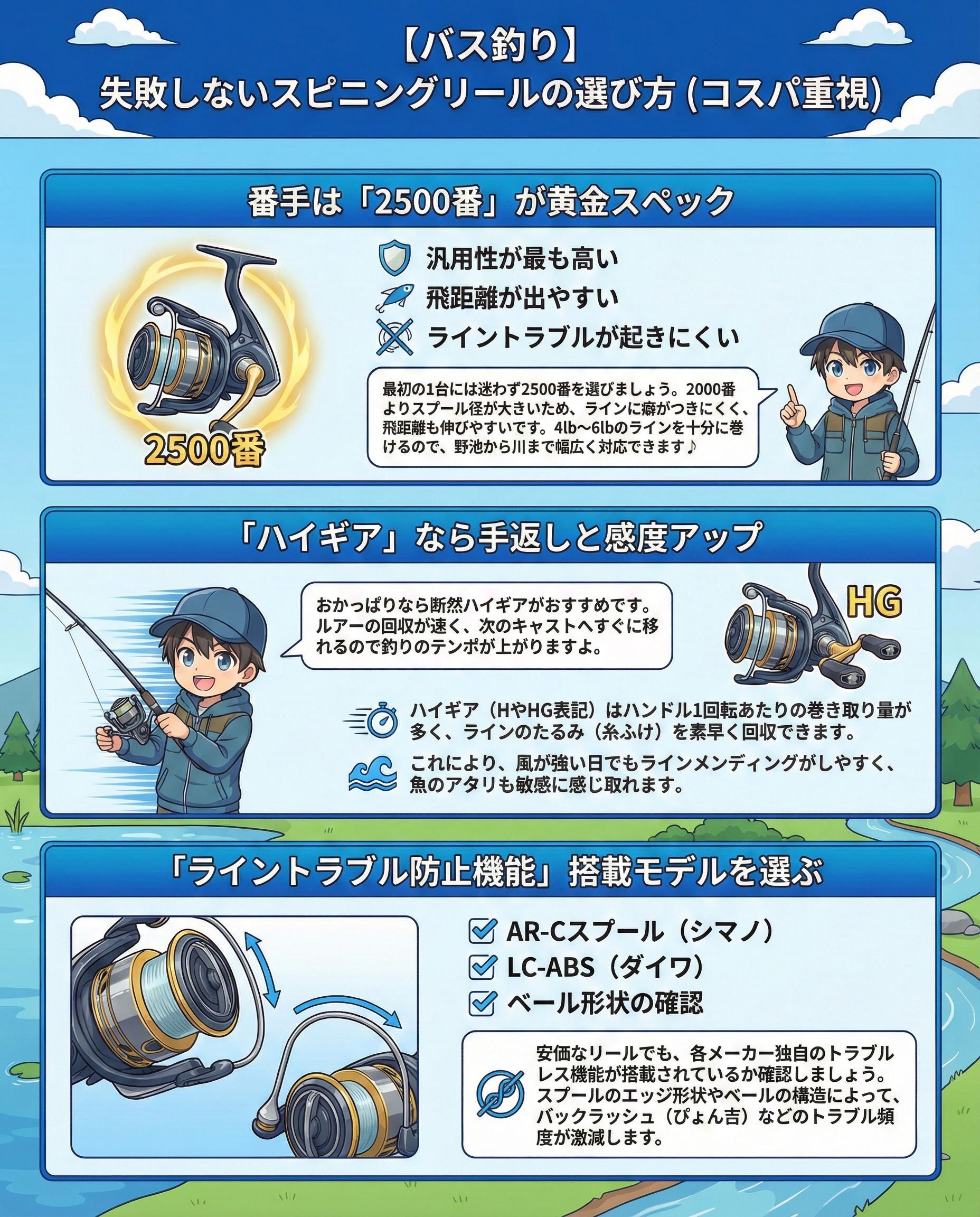 【バス釣り】失敗しないスピニングリールの選び方(コスパ重視)番手は「2500番」が黄金スペック