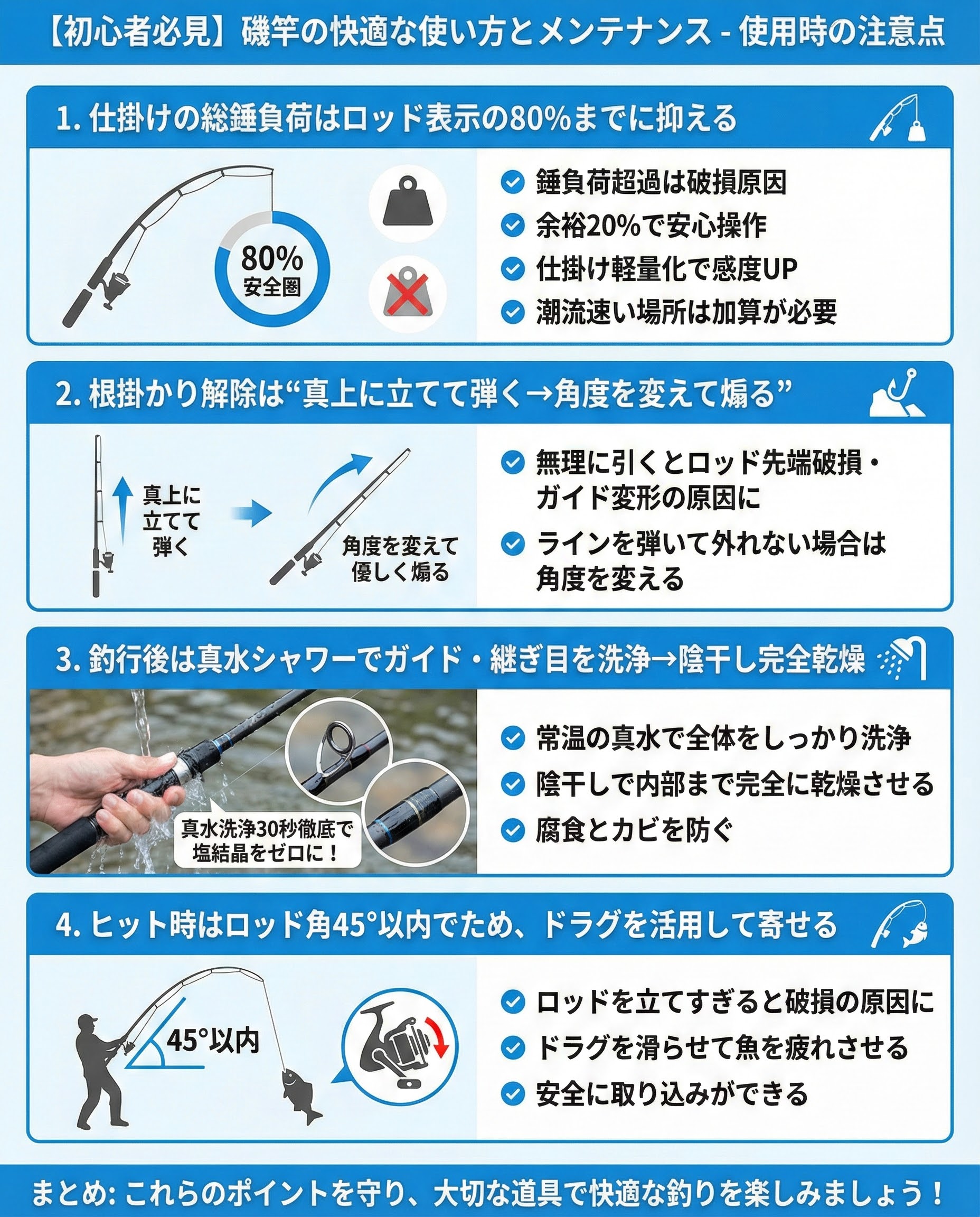 使用時の注意点仕掛けの総錘負荷はロッド表示の80 %までに抑える